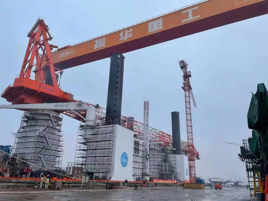1200T風(fēng)電安裝船南通豪通船務(wù)有限公司,除承接主船體制作及合攏外。更是承接了該船三分之二的特殊結(jié)構(gòu)制作及合攏(包含3個(gè)圍井分段2個(gè)固樁室)工程。這些工程對(duì)精度和焊接質(zhì)量有著較高的要求,總經(jīng)理薛志堅(jiān)掛帥督導(dǎo),安排最優(yōu)秀的裝配班組和最好的焊工,將一份優(yōu)異的成績(jī)單交到了船東和振華重工手中,得到了業(yè)主的肯定。